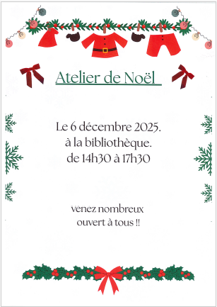 Atelier de noël a la bibliothèque municipale de Bernay-Saint-Martin